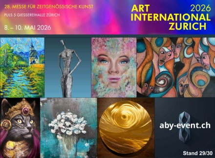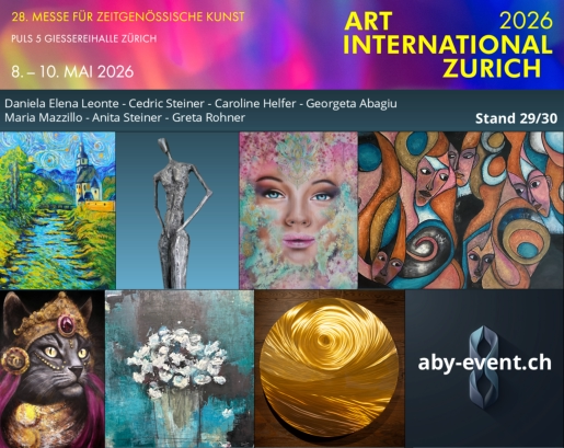 aby event nimmt mit ausgewählten Kunstschaffenden an der Messe „ART INTERNATIONAL ZÜRICH“ vom 08.05.–10.05.26 teil. Die Teilnahme bietet eine kompakte, kuratierte Präsentation aktueller künstlerischer Positionen, ermöglicht persönliche Begegnungen mit den Künstlerinnen und Künstlern und vertieft Einblicke in deren Arbeitsweisen. Besucherinnen und Besucher erhalten die Gelegenheit, neue Perspektiven zu entdecken, Kontakt zu schaffen und sich über Trends und Entwicklungen in der zeitgenössischen Kunst auszutauschen.